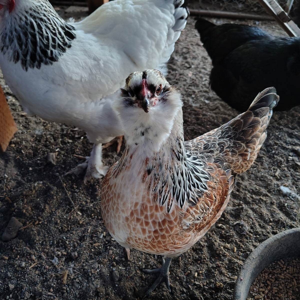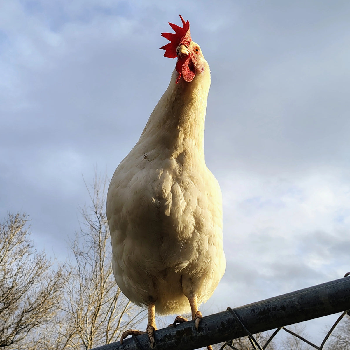 White Leghorn cross with icy-blue egg magic and zero chill about how cute I am. Fast, feisty, and always serving fresh looks and fresher eggs. Swipe right if you can keep up with my energy and appreciate rare, cool-toned beauty.